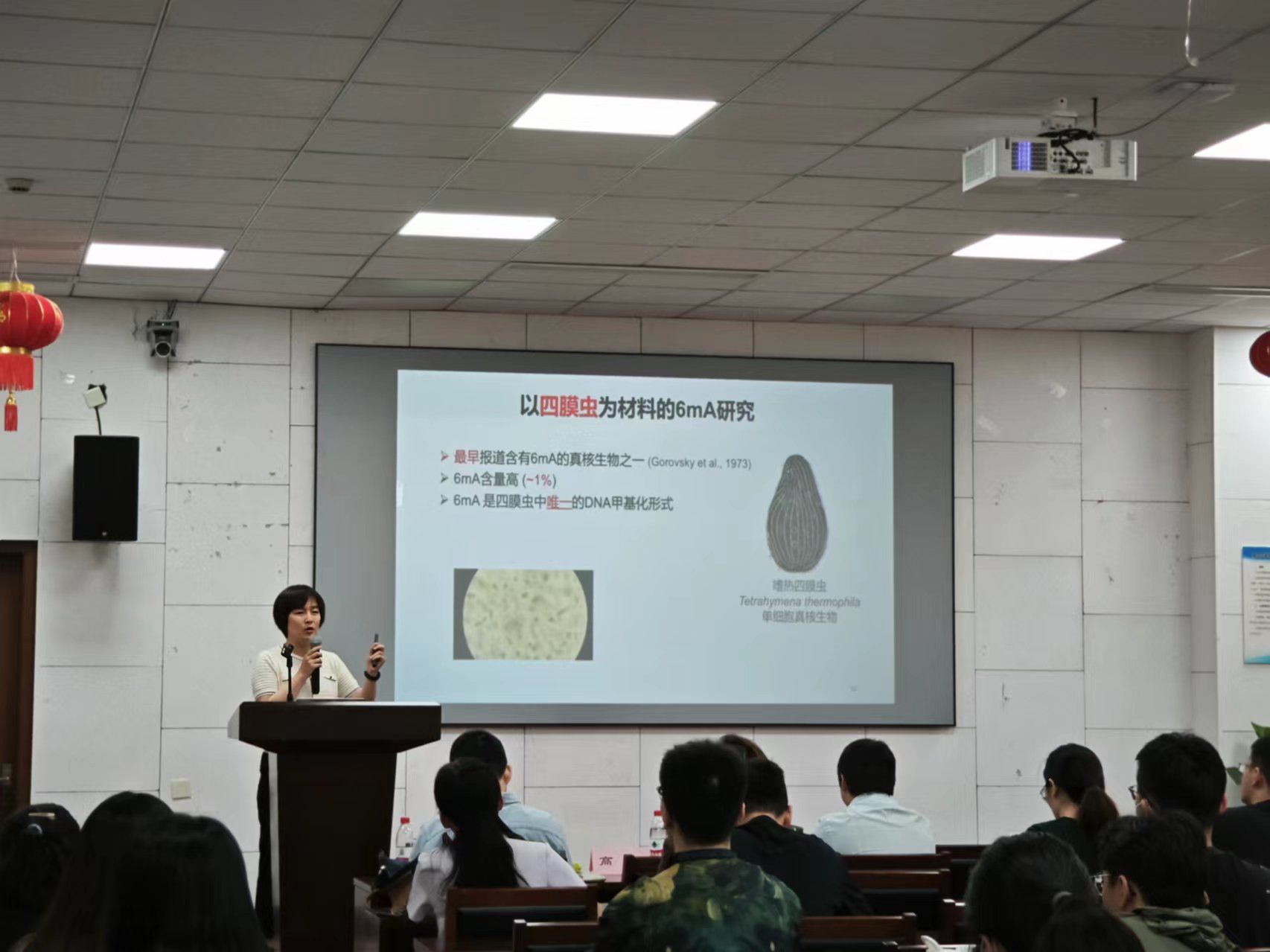 “海洋科学前沿与实践论坛”。本次高珊教授以“真核生物N6-腺嘌呤甲基化(6mA)遗传方式的解析”为题进行报告,龚骏教授的报告题为“原生生物多样性与分子生态学研究”。本次学术报告会议由麻豆成人