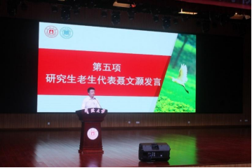 老生代表、2022级硕士研究生聂文灏分享了自己在科研和学生工作方面的经验,并鼓励新生们保持对学习与生活的热情,积极面对挑战。