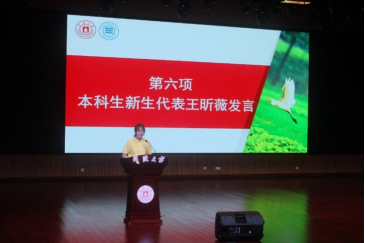 新生代表、2024级本科生王昕薇表示要脚踏实地,珍惜校园生活,努力学习、锻炼能力、服务社会,共同为学院发展贡献力量。