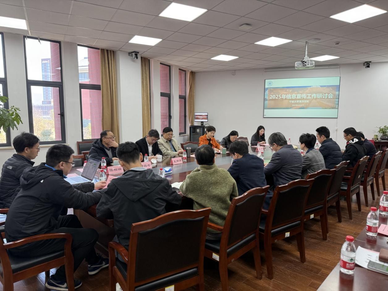 在梅山校区竺银康楼303会议室召开2025年信息宣传工作研讨会。校党委宣传部副部长王湖清、学院党政班子全体成员、全体兼职信息员等30余人参会,共商新形势下学院宣传思想工作创新发展之路。