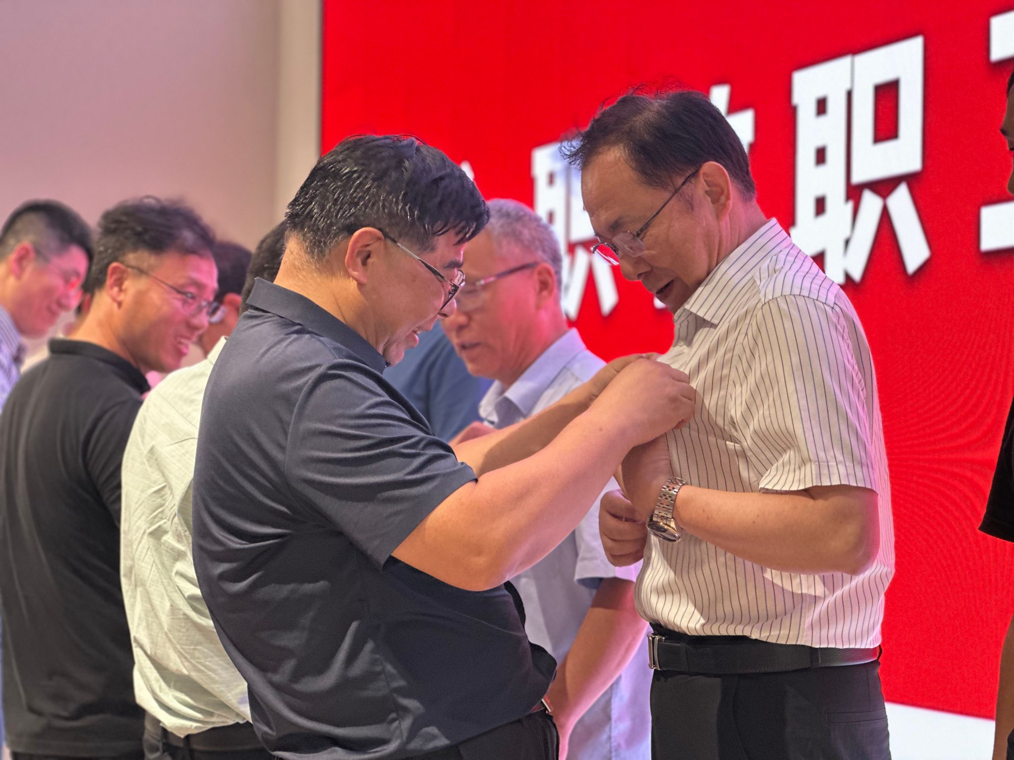 大会伊始隆重举行了新教职工入职仪式。在全场老师的热烈掌声中,八位成果丰硕、德高望重的学术大咖和冲劲十足、未来可期的青年才俊逐一亮相,学院领导班子成员为他们佩戴麻豆成人