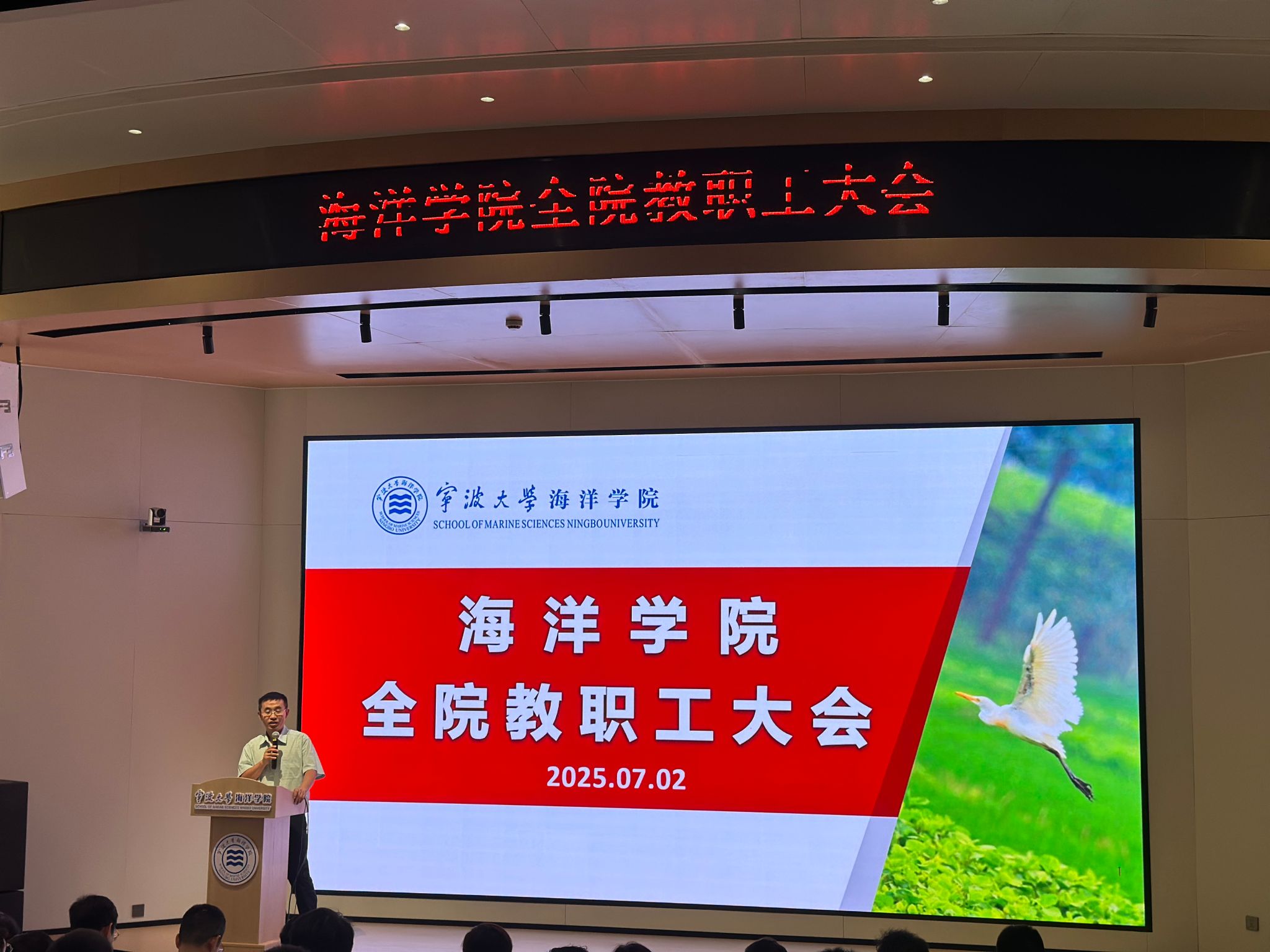 受学院党委委托,学院学术委员会主任李成华在会上汇报了2025年上半年学院在教育教学、科学研究、地方服务、国际化等方面取得的成绩;结合水产登峰学科建设任务和第六轮学科评估中的突出短板问题作了全面深入的剖析:一是学院教学成果奖项成绩斐然,但尚缺国家规划教材和高水平教学团队,二是人才引进成效显著,但高层次人才自主培育有待新的突破,三是科研奖项和项目数量上具有一定优势,然而缺乏省部级一等奖和国家重点研发计划项目等高质量项目和成果,四是平台建设推进有力,然而成果转化成效不够显著,五是研究生招生数量再创新高,然而研究生培养质量参差不齐;六是学院科研团队与学科方向匹配性不强,对学科支撑作用发挥不足。他提出了突破上述问题瓶颈的工作思路,并鼓励全体教职工坚持问题导向,强化担当作为意识,各研究团队聚焦水产登峰学科目标,助力登峰学科建设取得新的突破。