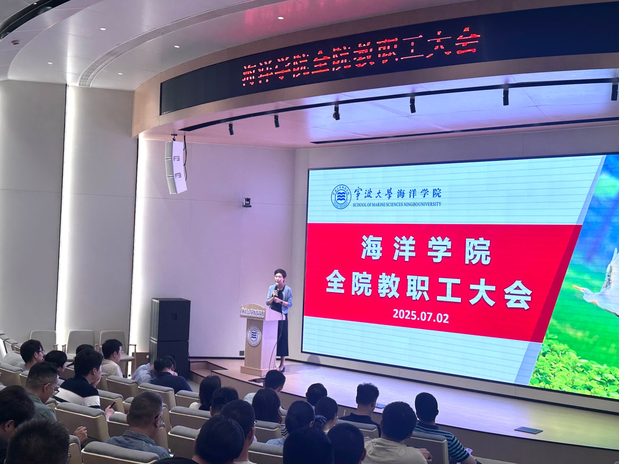 2024-2025学年第二学期全体教职工大会在梅山校区中试基地报告厅召开,学院党委书记邵丽主持会议。