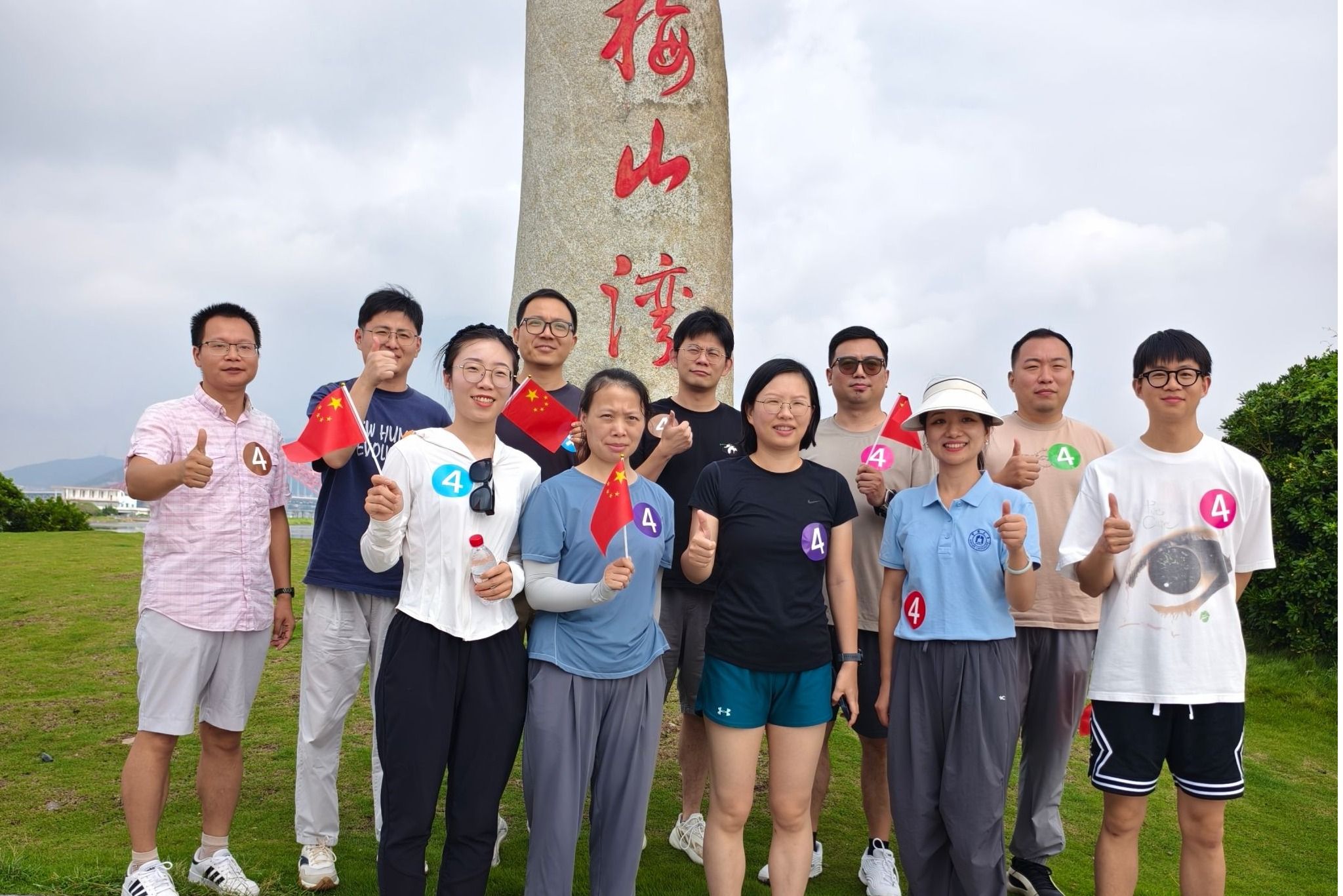 上午10时,参与活动的教职工齐聚海洋南楼一楼大厅,现场气氛热烈。活动伊始,工作人员统一分发号码牌,随后学院党委书记邵丽发表动员讲话。她指出高校教师作为立德树人的第一线,既要用知识为学生“赋能”,又要用健康的身心为教育事业“续航”;她强调就如跑道上的坚持与接力,教育工作者在讲台、实验室的坚守,都是为国家培养人才、为民族积蓄力量;她鼓励大家在奔跑中感受运动的快乐,在并肩前行中凝聚团队的力量,以更加强健的身心、更加昂扬的姿态,扎根教育沃土,为培养担当民族复兴大任的时代新人贡献力量,以实际行动向祖国献礼!全体人员在合影留念后,认真听取了活动注意事项,随后统一乘车前往梅山湾比赛地点。