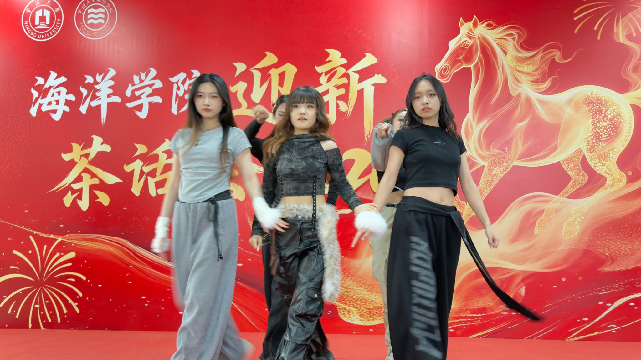 “欢聚·同乐”篇章中,节目与互动游戏穿插进行,氛围热烈融洽。教师合唱、学生舞蹈、个人独唱等节目轮番上演,展现了师生积极向上的精神风貌;学院领导班子登台献唱,进一步凝聚了集体向心力。歌曲飞花令、三人版你划我猜、“天马驾驾驾”等互动游戏有序开展,不仅丰富了活动形式,更增进了师生间的默契与情谊,现场欢声笑语不断。