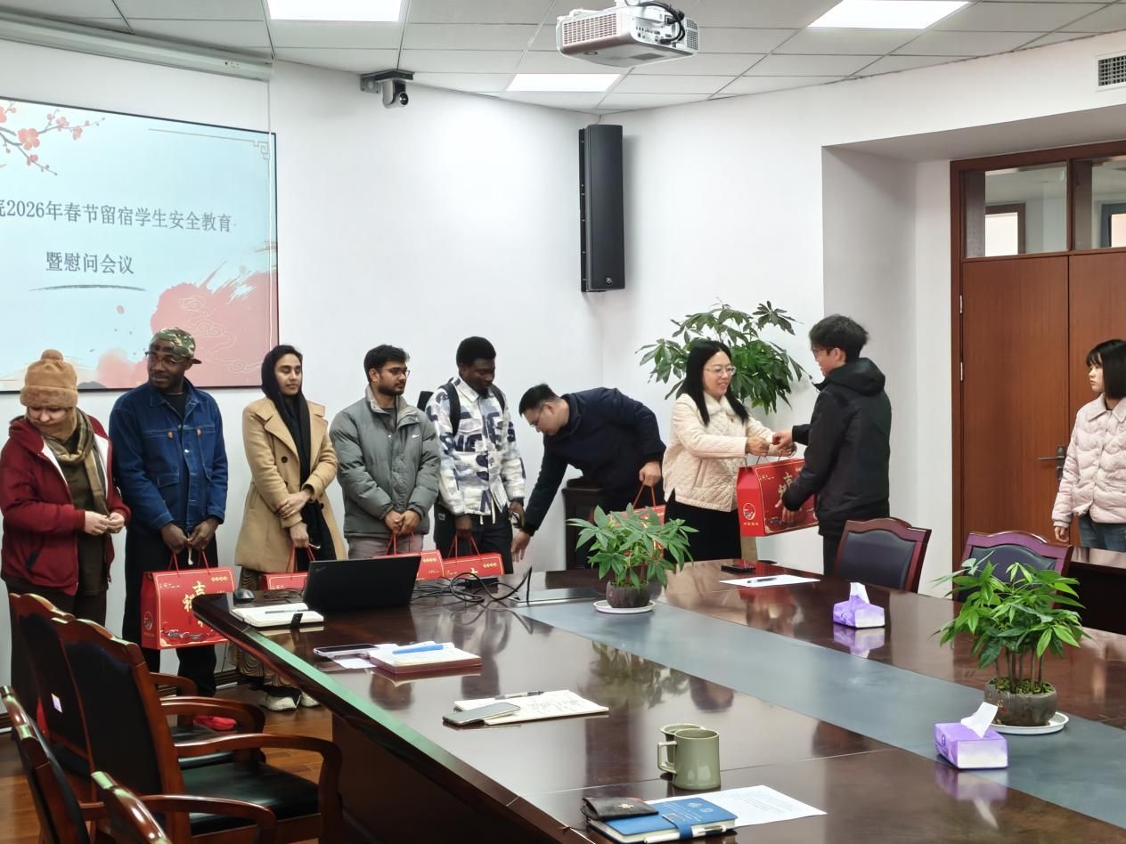 为每位春节留校的同学准备了精心挑选的新年慰问礼包,让同学们在校园中也能感受到浓浓的年味与家的温暖。