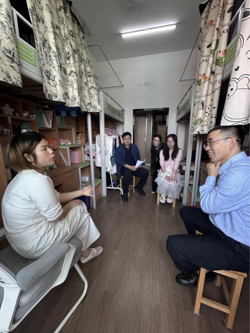 本次走访不仅扎实推进校园安全隐患排查整治,更是推动“八进九联系”工作机制走深走实的生动实践,提升了育人工作的温度与实效,实现了安全底线守护与成长关怀扶持的同频共振。学院将持续推进寝室常态化巡查,不断优化育人机制,完善帮扶工作体系,全力打造安全、整洁、和谐的校园住宿氛围。