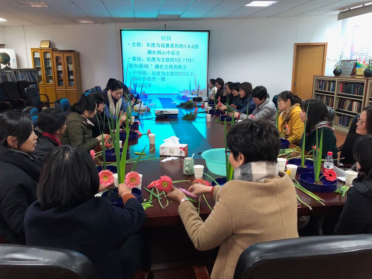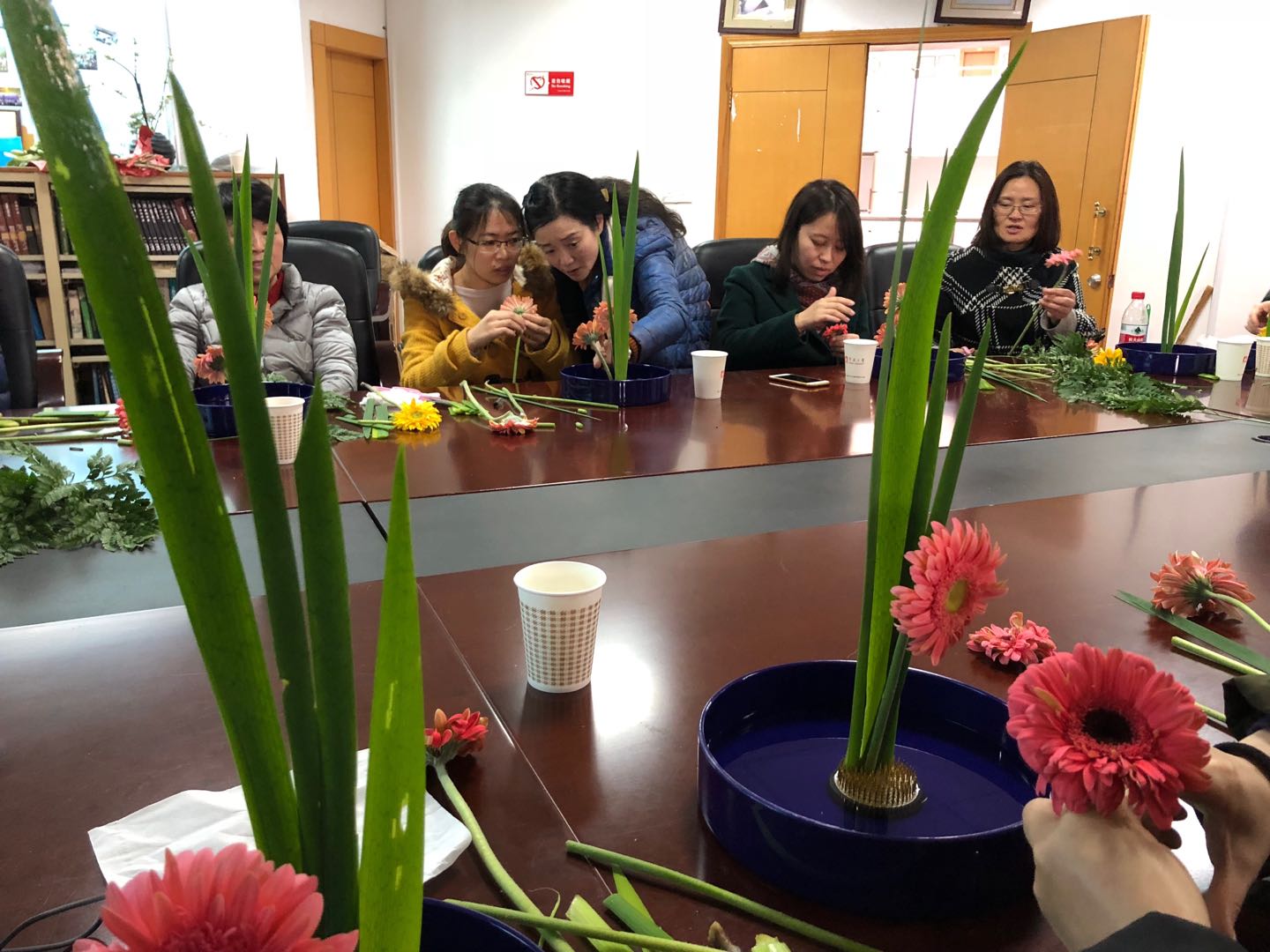 分工在学院208会议室举办插花艺术与体验活动。本次活动邀请商学院李菁老师作为主讲嘉宾,共有20余名学院女教工参加活动。