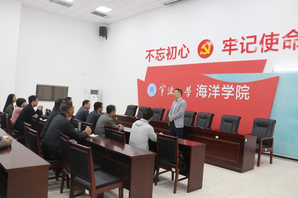 蔡真亮书记详细介绍了麻豆成人 党委全国标杆院系的创建情况,逐一介绍了党建馆的陈列内容,双方就高校基层党建与学科发展等内容进行了深入探讨与交流。象山县科技局客人还参观了学院实验室、中试基地。