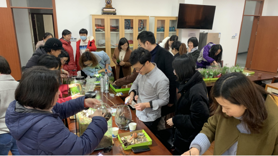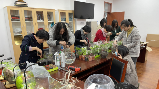 工会小家里已然呈现一片盎然的绿色,使人感受到阵阵春意和勃勃生机。在这里,学院分工会组织开展了 “方寸水景、海洋情深”微型水草景观瓶制作活动,庆祝2021年“三八”国际劳动妇女节。