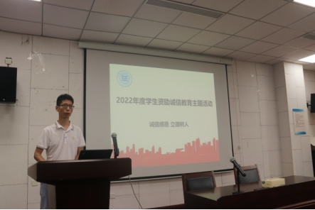在竺银康楼107报告厅举行了“诚信感恩,立德树人”为主题的学生资助诚信教育讲座,由崔浩亮老师主讲。