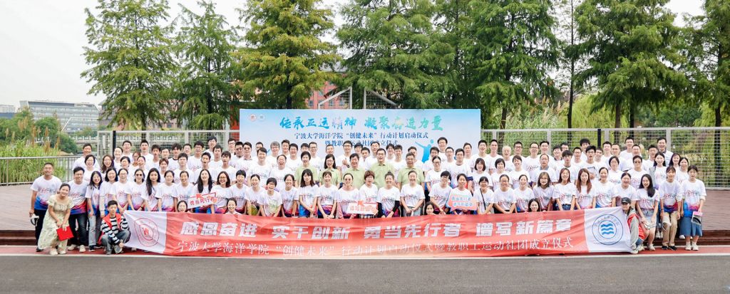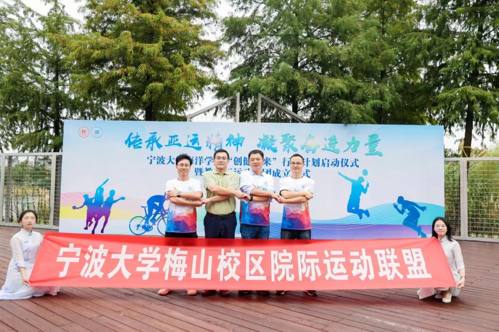 到场嘉宾为山海骑行团、羽你齐飞团、乒出精彩团和海洋乐跑团的四位团长颁发聘书并授旗。各位团长为社团成员赠送“入团礼”,四个运动社团在个性鲜明的口号声中逐一上台亮相。梅山校区四位分工会主席、师生社团负责人先后上台开展联盟、结对仪式。参与活动的师生们纷纷举起“我爱海洋,强院有我”“创健未来 我参与”“争当先行者,谱写新篇章”等手持牌在现场记录精彩瞬间。