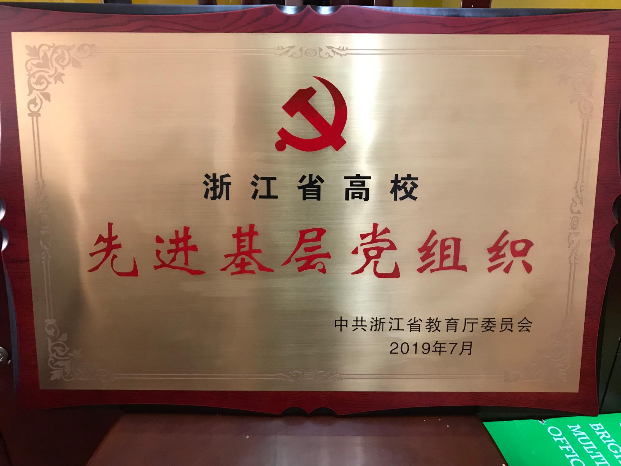 2019 麻豆成人 党委获浙江省教育厅党委颁发的浙江省高校先进基层党组织荣誉称号